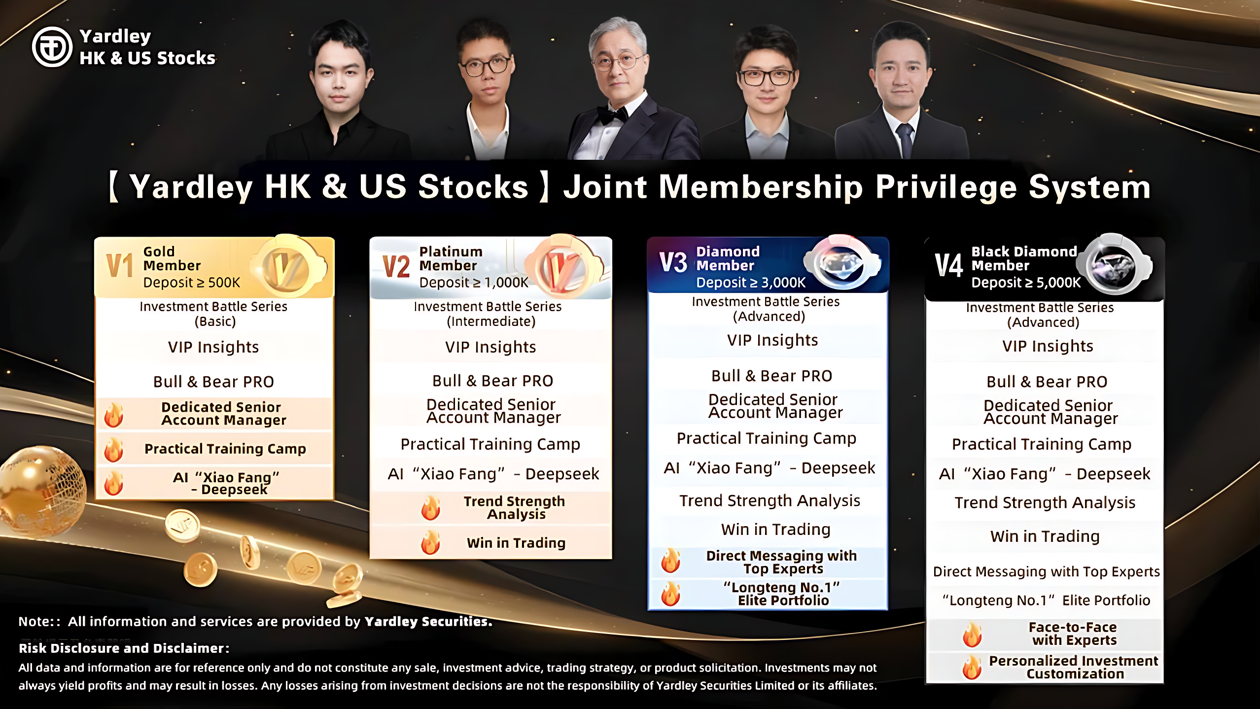 Membership service levels are based on users' Yardley Securities account assets over a certain period, regularly updated and classified accordingly